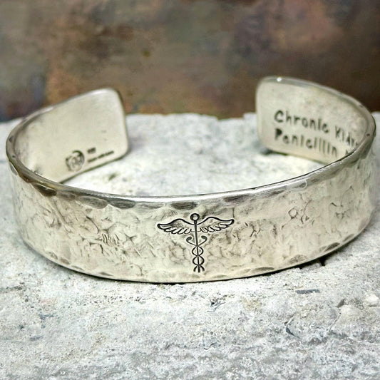 Medic Alert Wide Cuff Bracelet Sterling Silver