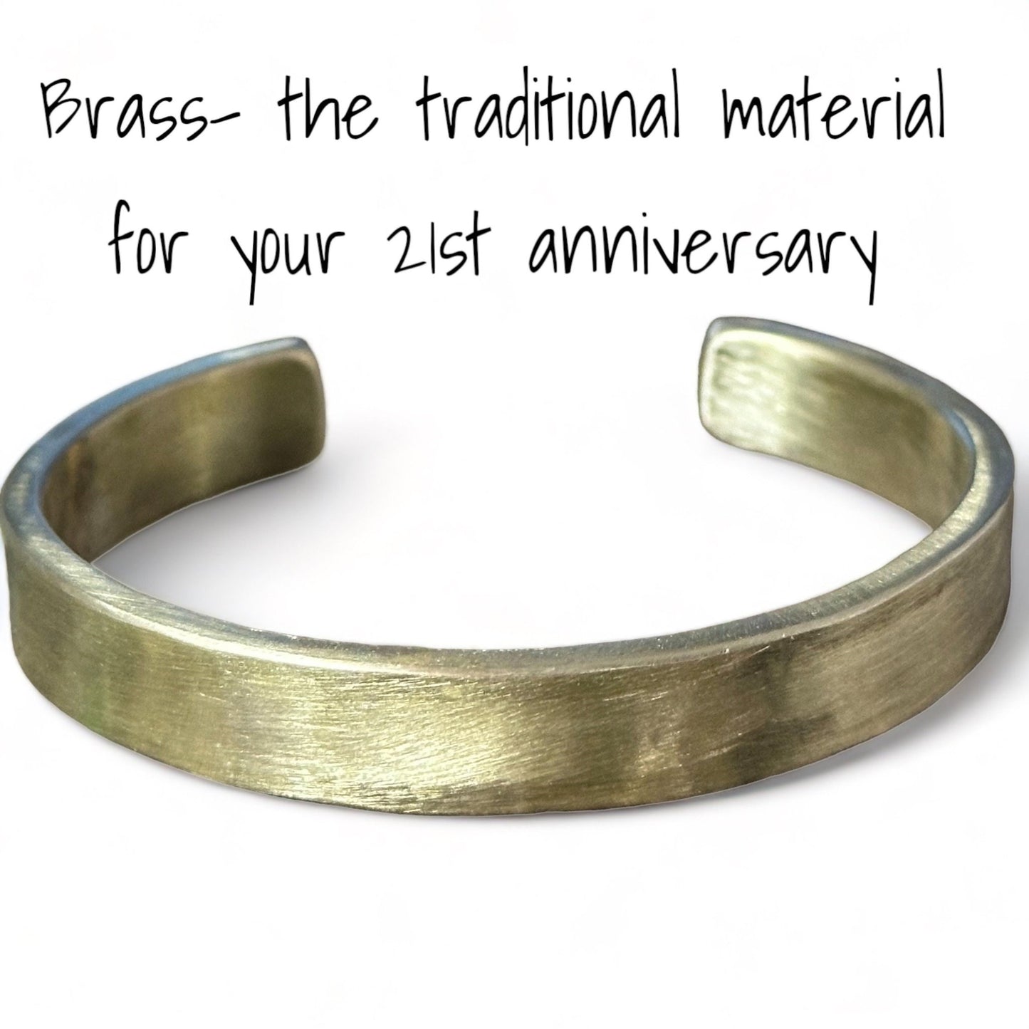 21st Anniversary Engraved Brass Cuff Bracelet – Personalized Gift