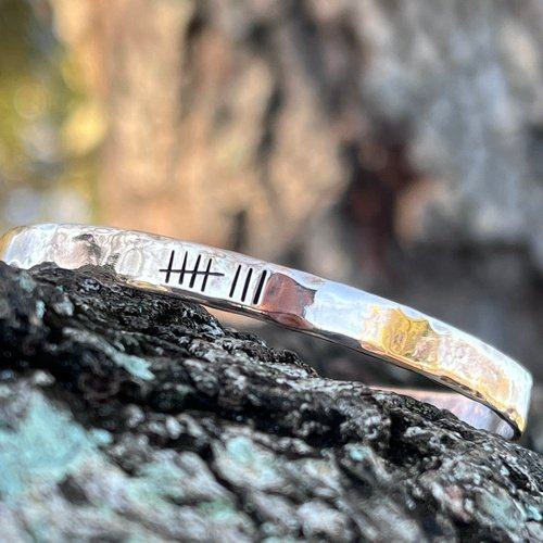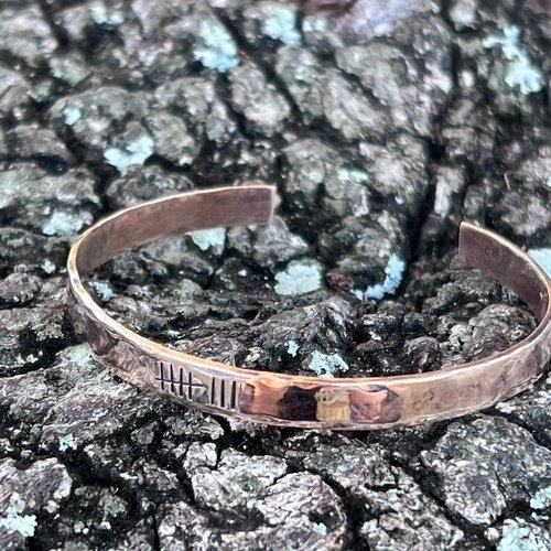 Celebrate 8 years together with this solid bronze cuff bracelet with hand engraved tally marks and a bright finish that shines like the love you have for her.