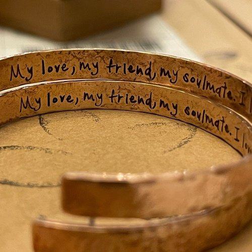 My husband tipped me off to the beauty and craftsmanship of your products. I found the perfect cuff and choices to personalize it. My husband loves it. It is a forever gift.