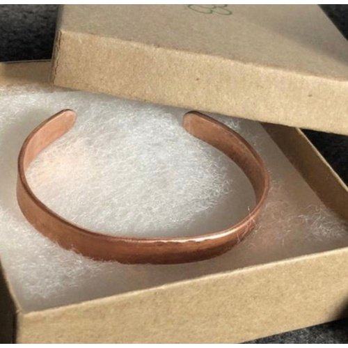 This solid bronze bracelet is 6 inches long, and 1/4 inches wide. It is a thin, lightweight bracelet that is comfortable to wear and perfect for every day.