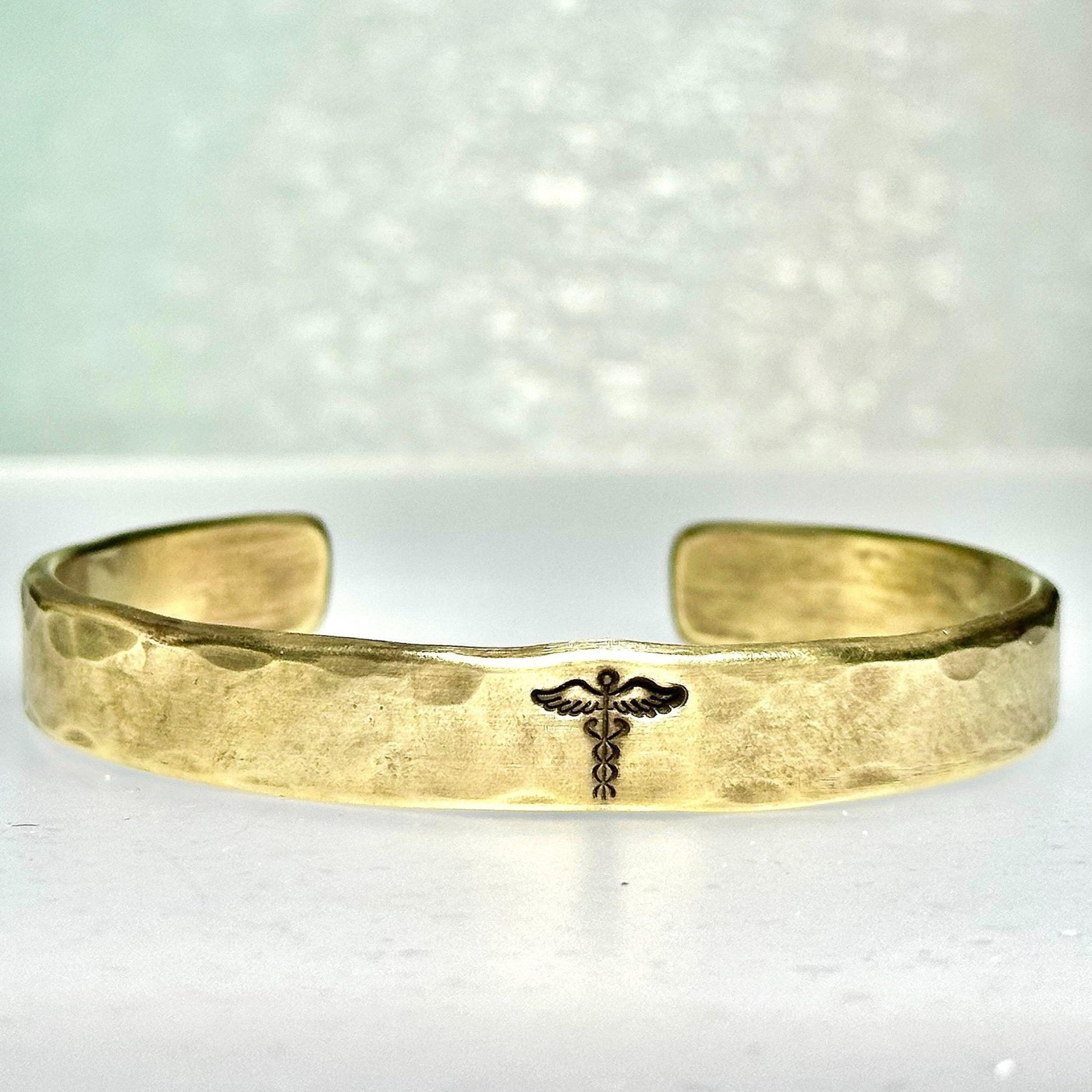 If you ever find yourself in a situation where you can’t speak, let this hand-forged brass cuff do the talking for you. Featuring the classic caduceus on the outside and plenty of room for your medical details on the inside, this bracelet is like a silent superhero on your wrist. Solid brass with a hammered finish, it’s tough, stylish, and perfect for men or women who want to look ready for anything. And don’t worry about sizing—it’s better to go bigger than risk cutting off circulation (unless you’re into that).