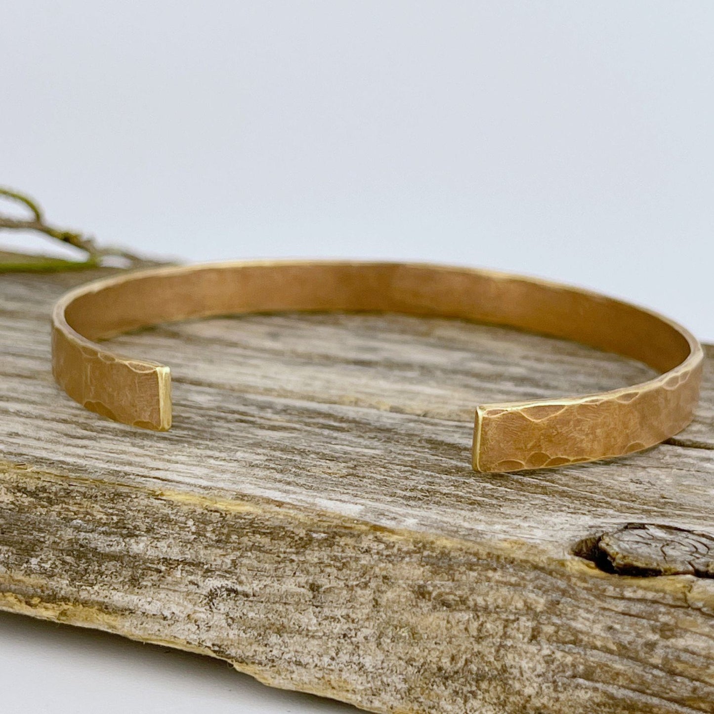 This solid bronze bracelet is available in 6 or 7 inches long, and 1/4 inches wide. It is a thin, lightweight bracelet that is comfortable to wear and perfect for every day.