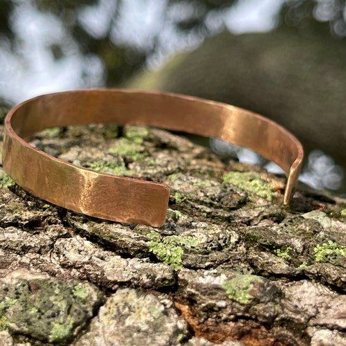 This solid bronze bracelet is 6 inches long, and 5/16 inches wide. It is a solid bronze, thin, lightweight bracelet that is comfortable to wear and perfect for every day.