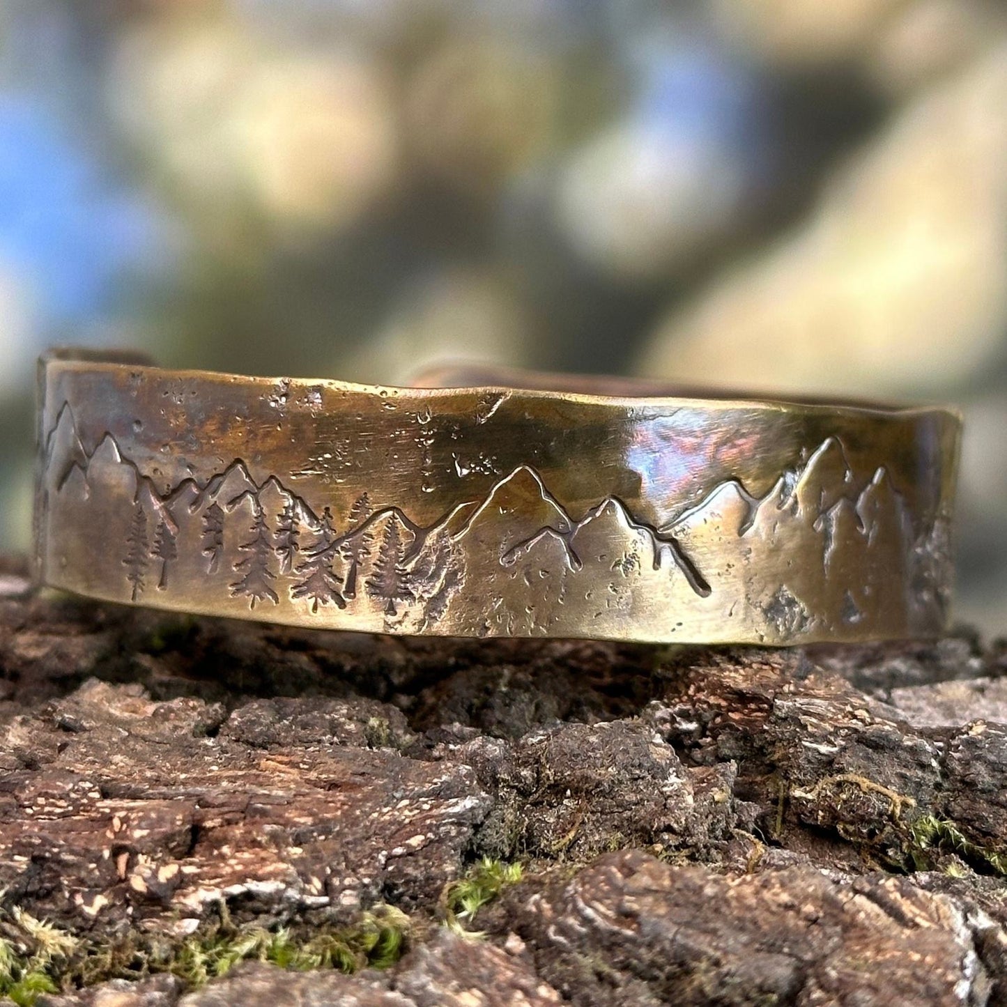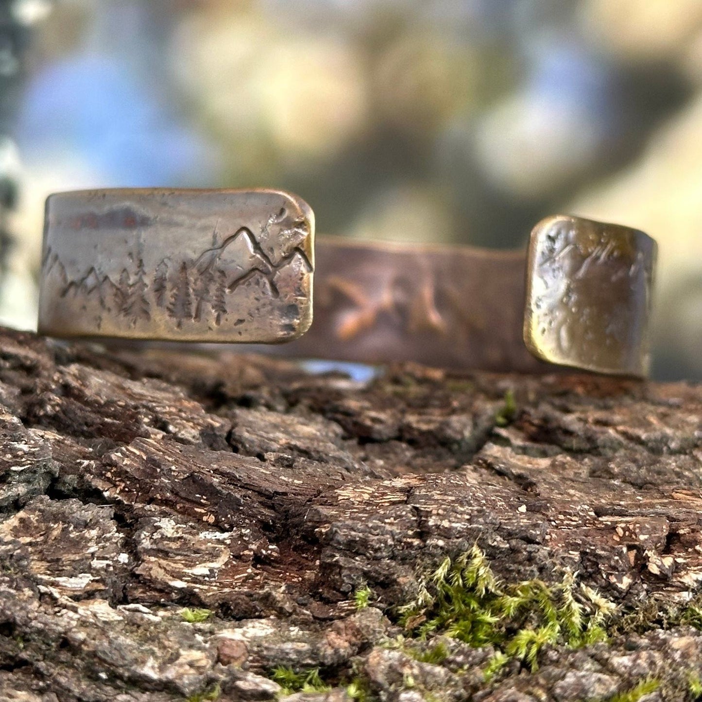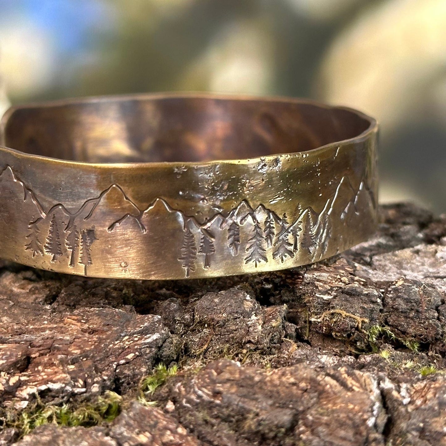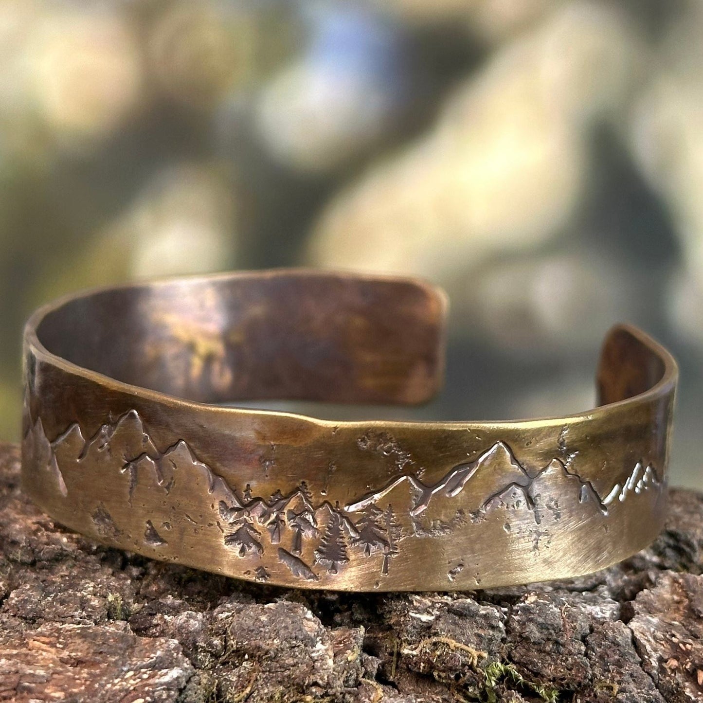 Mountains and Trees Bronze Cuff Bracelet, Personalized Bracelet