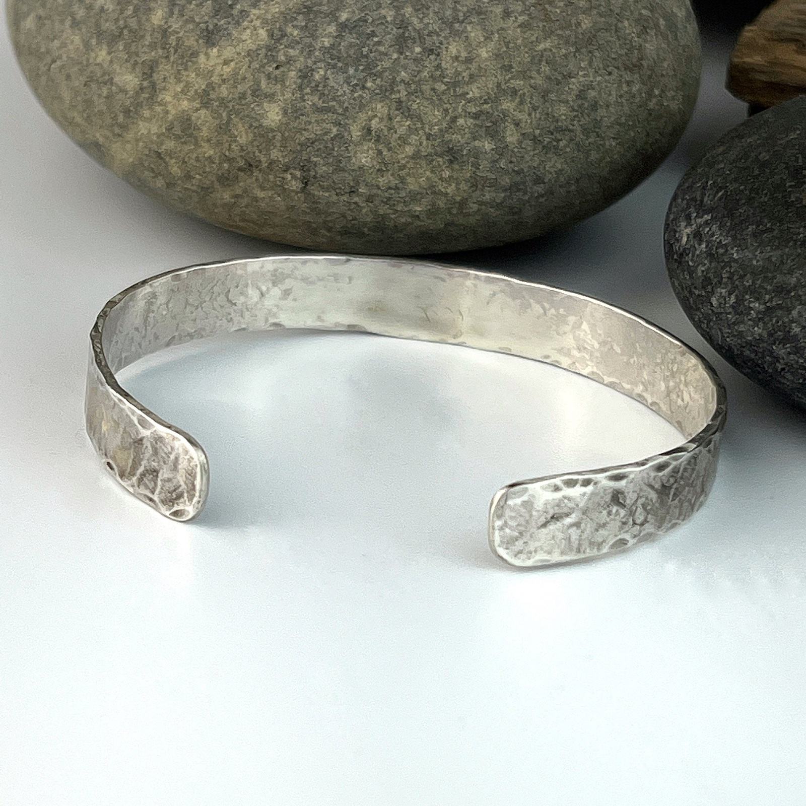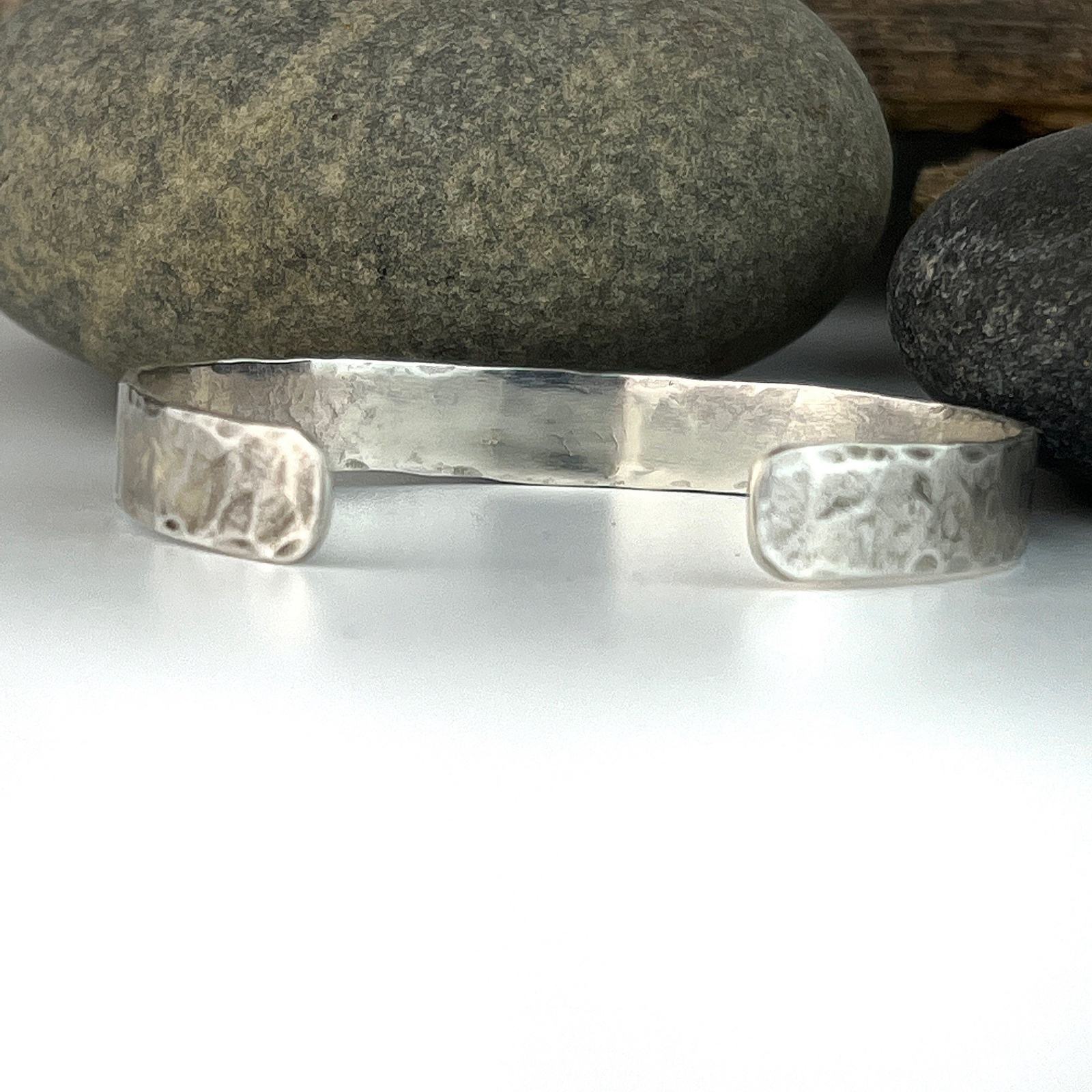 This bracelet was created in fire for a rustic finish. The classic cuff that no man should be without. This bracelet is as unique as he is, no two will ever be alike.
