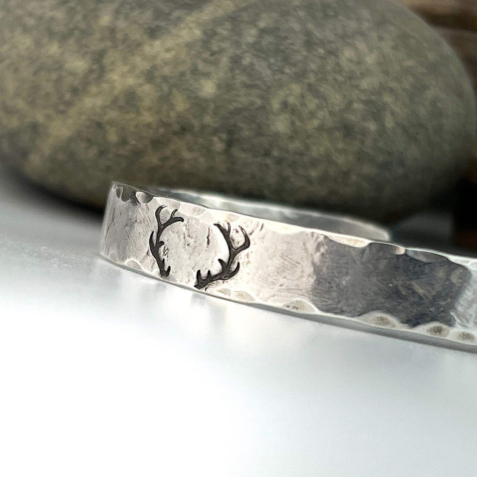 Your bracelet can have an inscription done on the inside, as well as the beautifully rustic deer antlers on the outside. Make that selection when adding it to your cart, and leave your message in the personalization box of through a message to me.