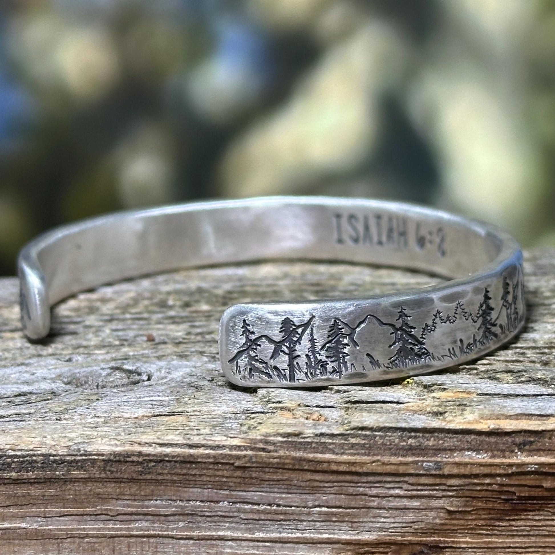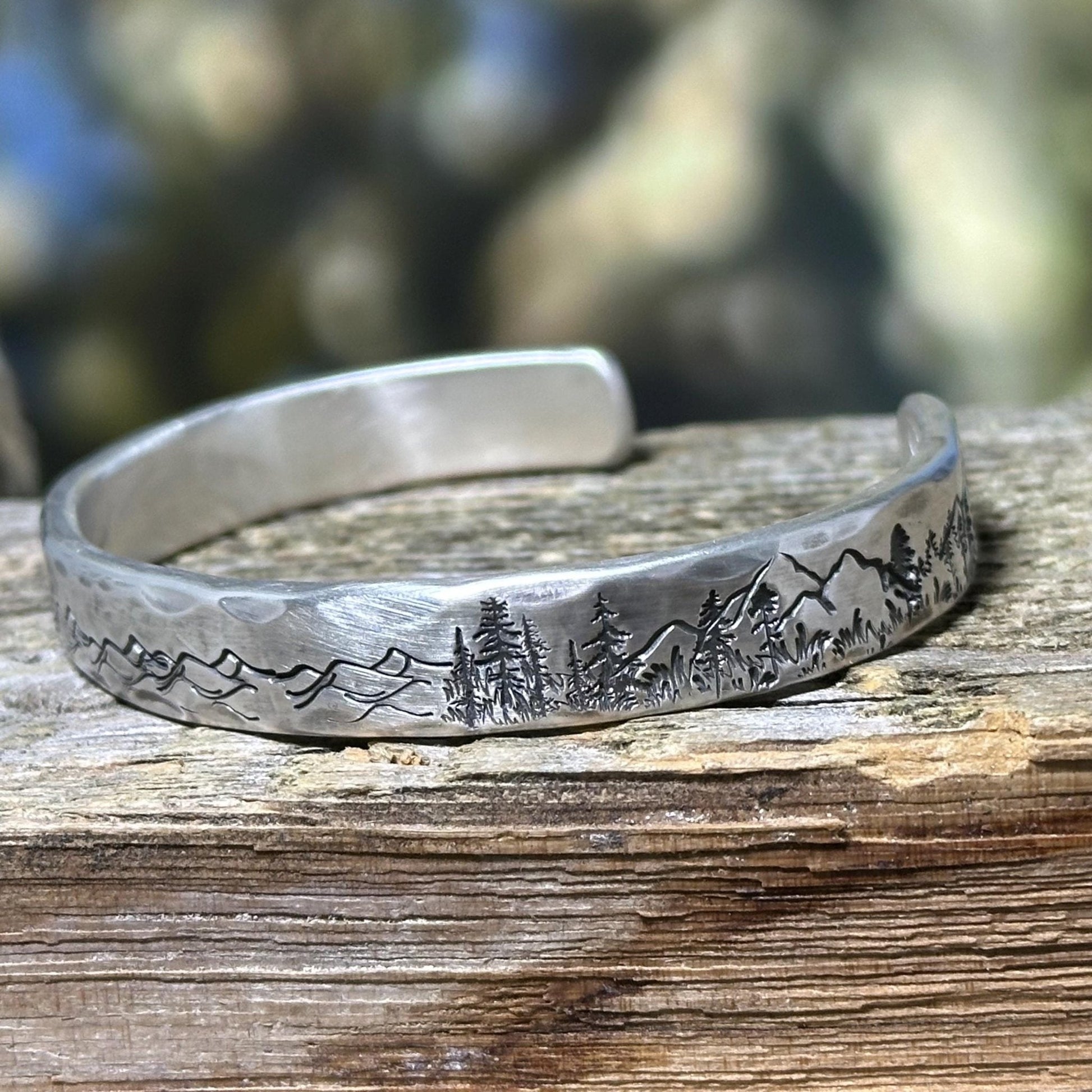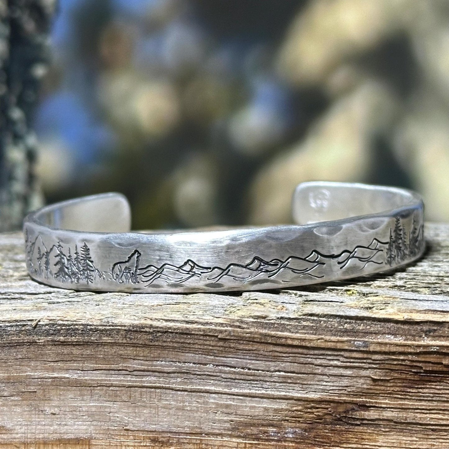 Crafted with the love and care of a silver-tongued artisan, this bracelet boasts a hammered finish that screams “rustic charm” louder than a wolf’s midnight serenade. Whether you’re a man or a woman, this piece is your ticket to the great outdoors, even if you’re just stepping out for a coffee.