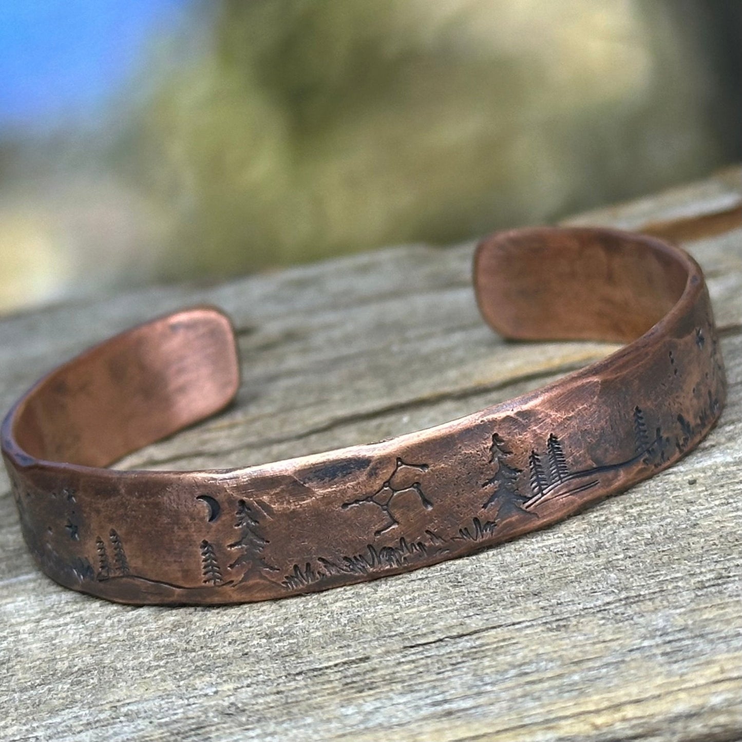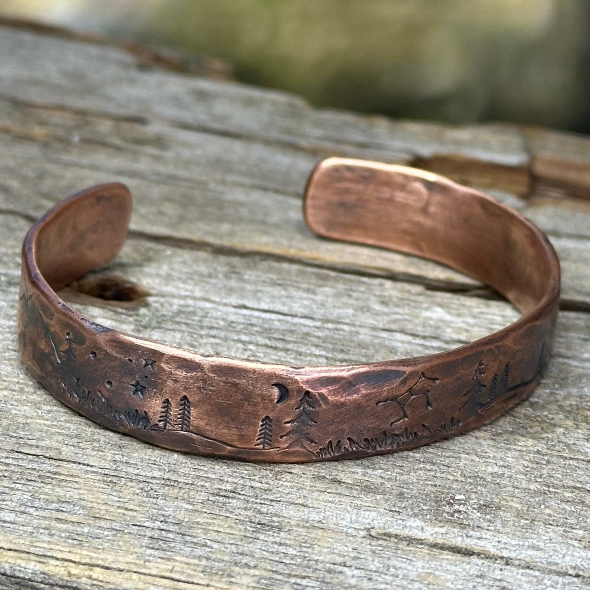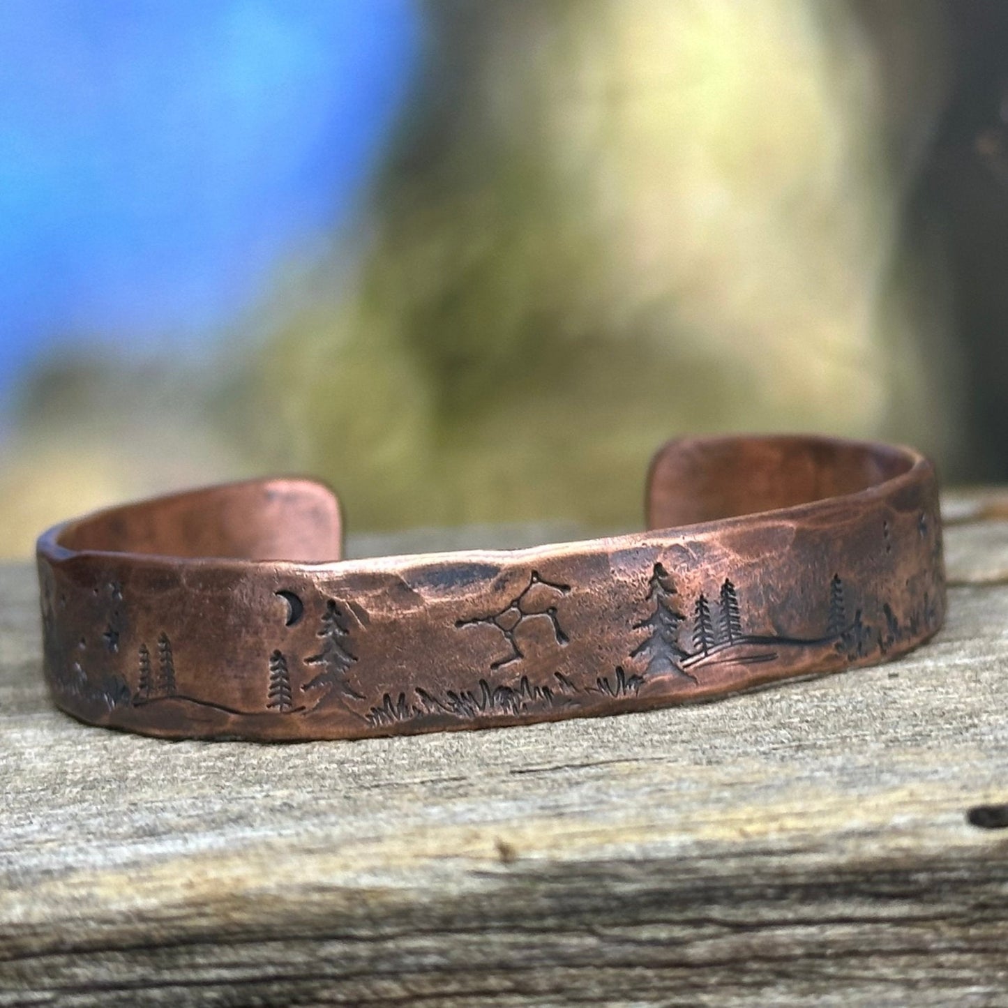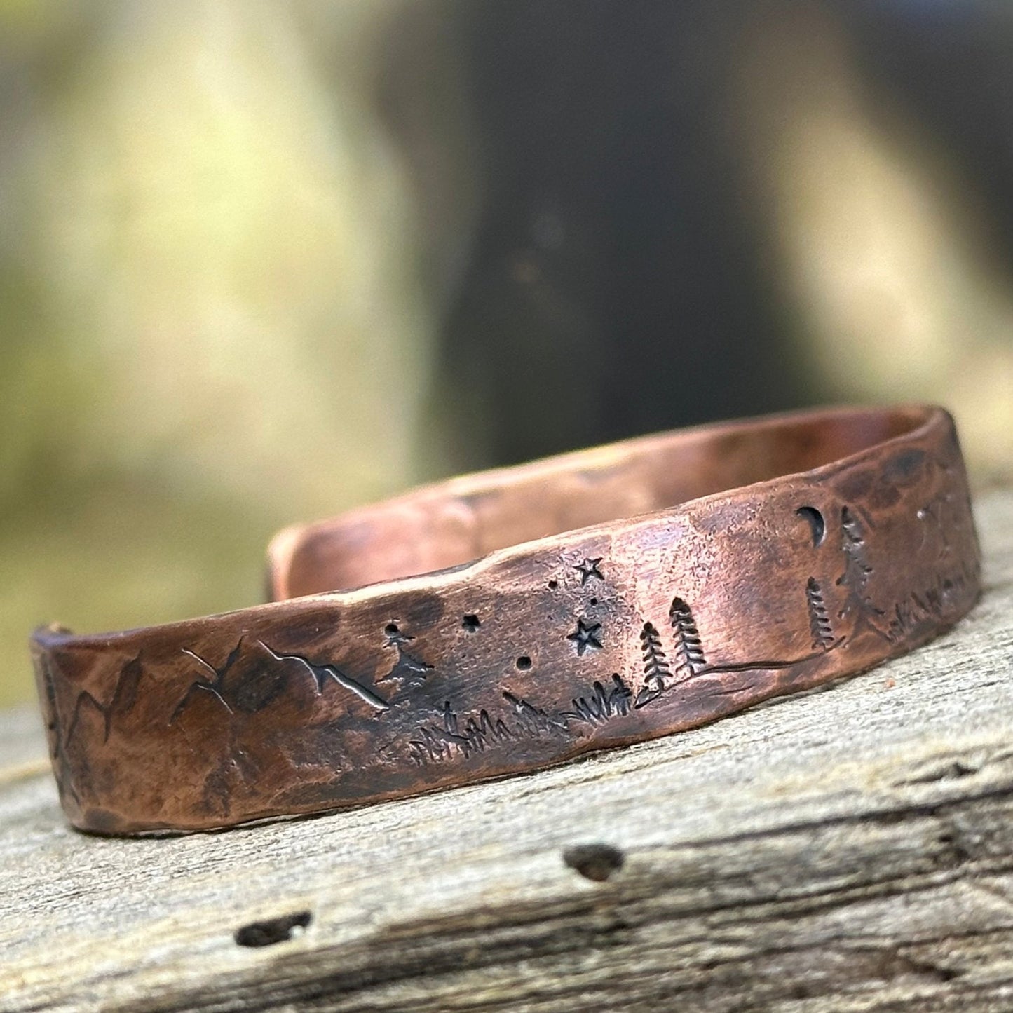 Everyone deserves to wear a part of the cosmos around their wrist. Our 'Handmade Solid Copper Cuff Bracelet' makes this possible, offering a daily reminder of the connection between the earth and the vast universe above us. To ensure its lasting appeal, just remember to remove the cuff before coming into contact with water or chemicals.