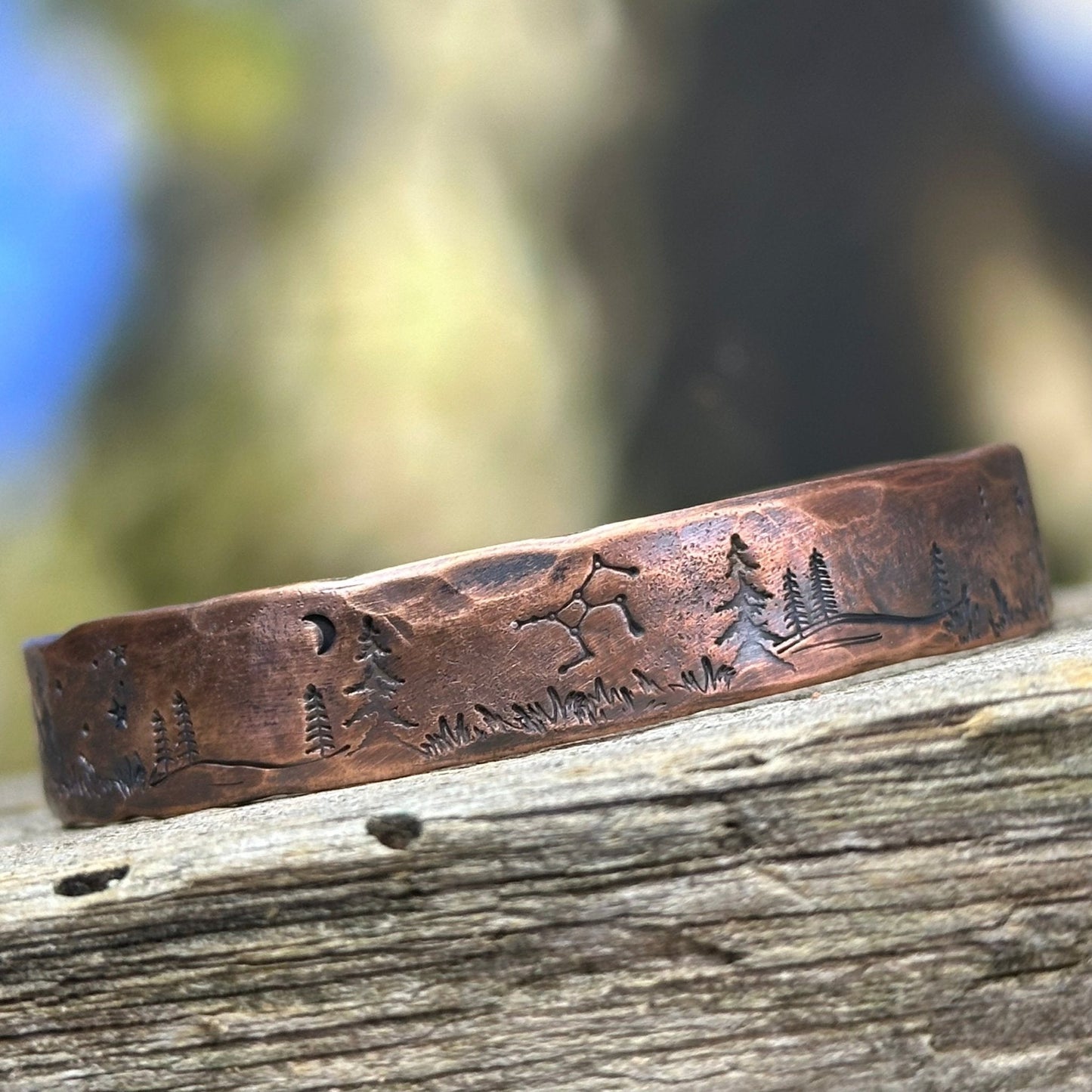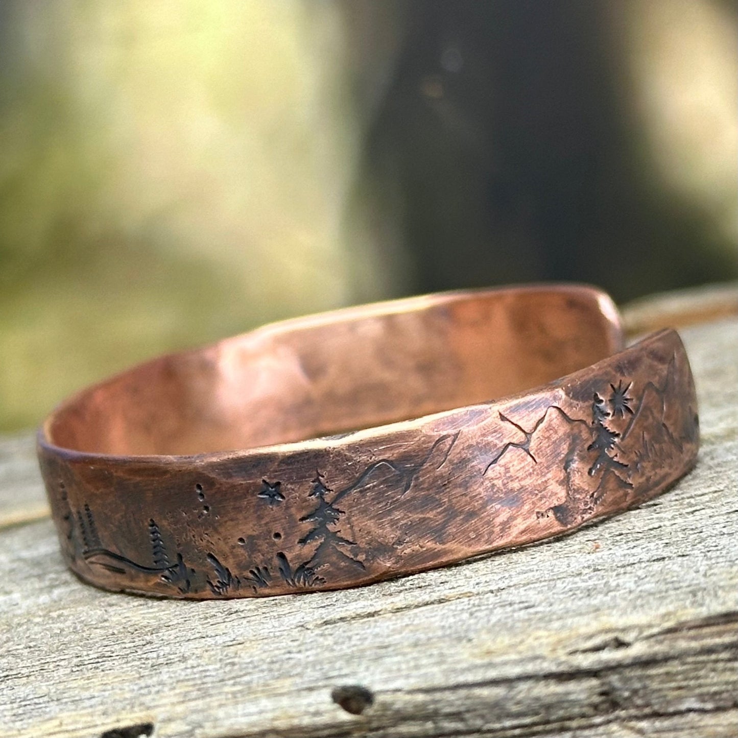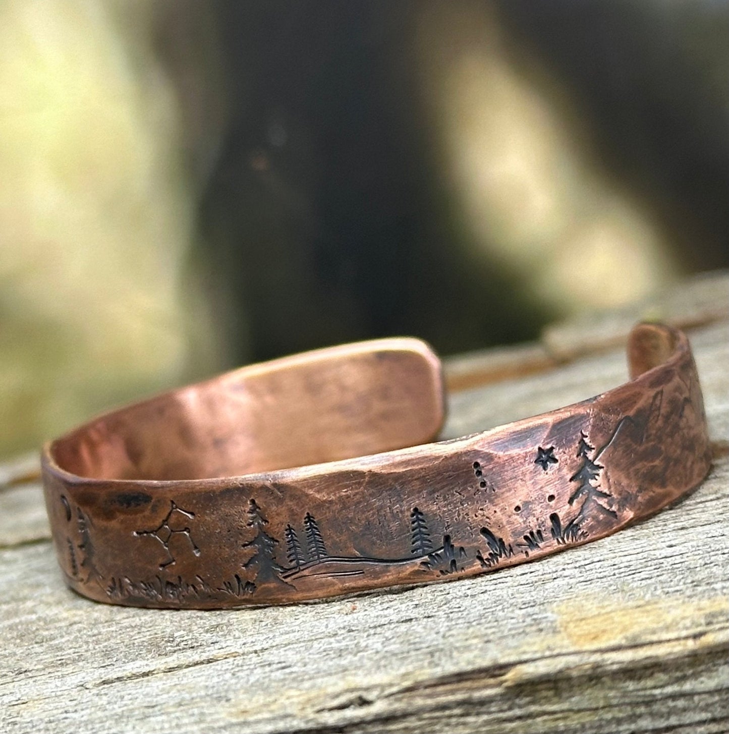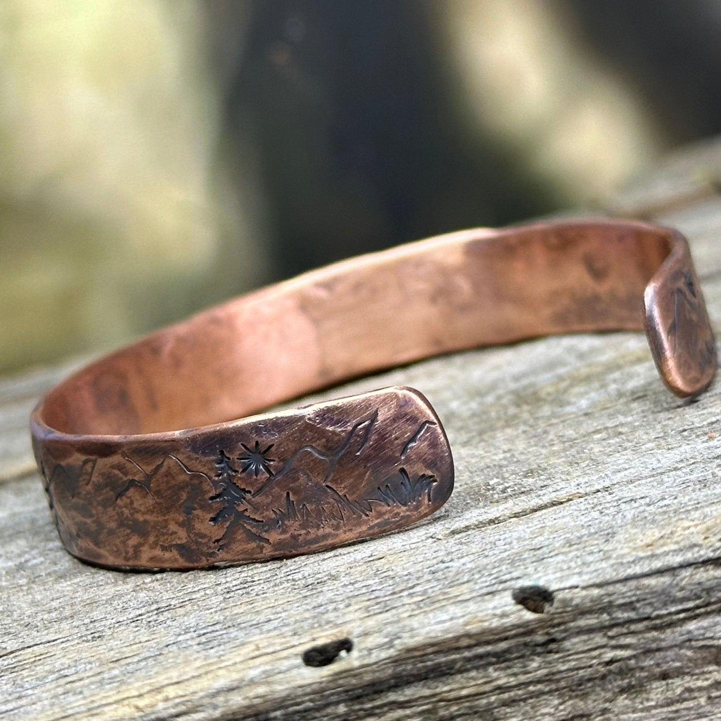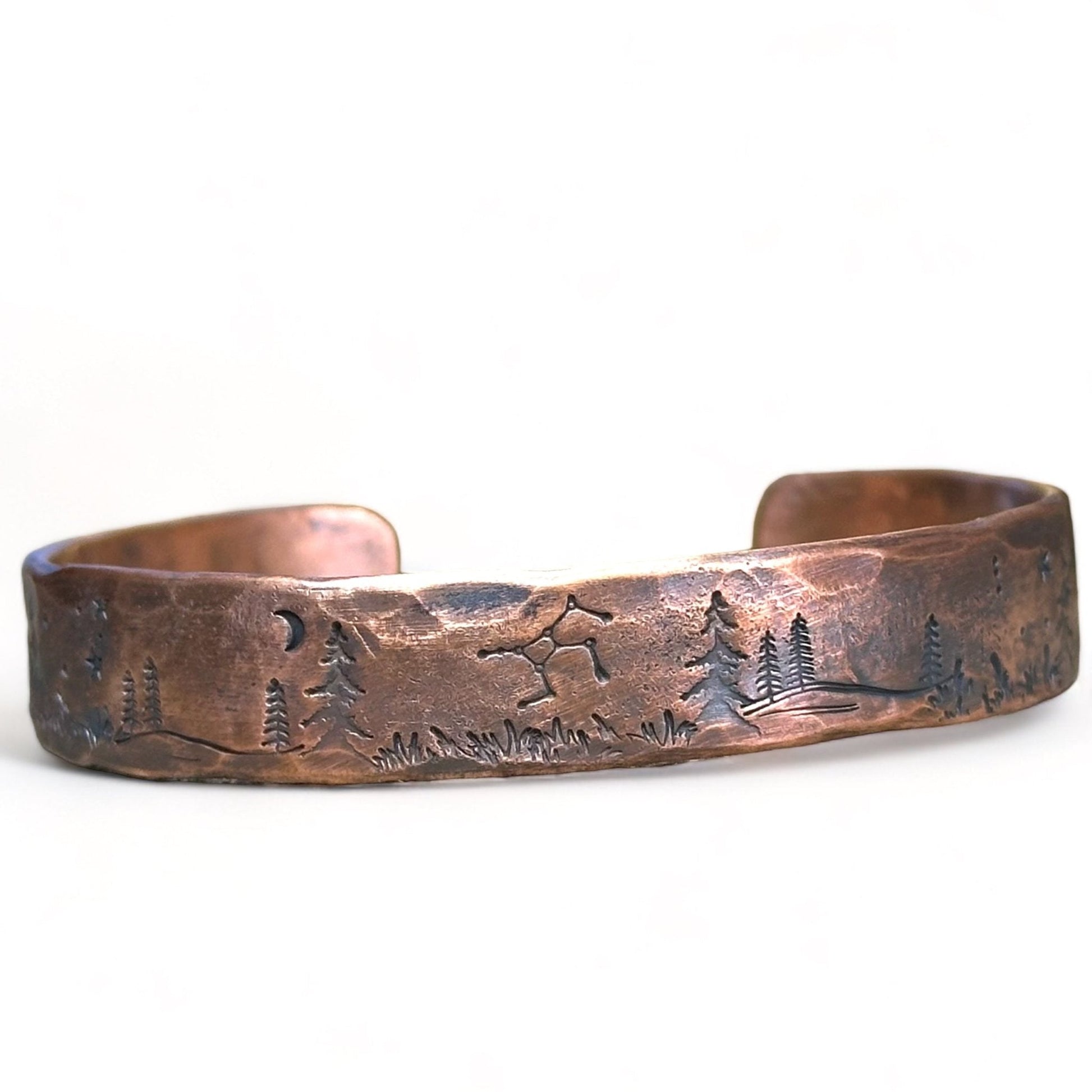 Everyone deserves to wear a part of the cosmos around their wrist. Our 'Handmade Solid Copper Cuff Bracelet' makes this possible, offering a daily reminder of the connection between the earth and the vast universe above us. To ensure its lasting appeal, just remember to remove the cuff before coming into contact with water or chemicals.